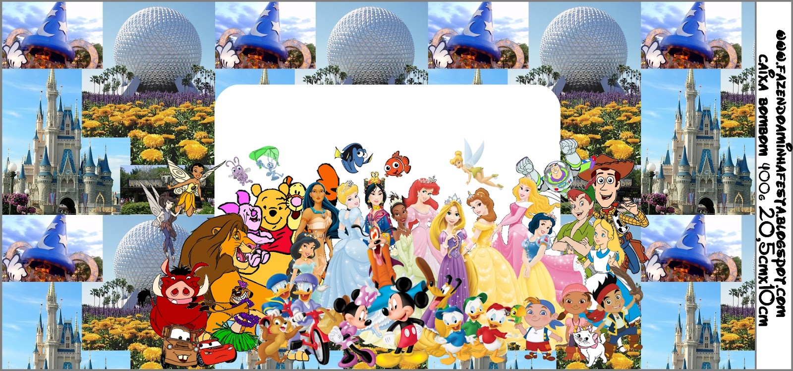 Convite Caixa Fundo Walt Disney World com Personagens: