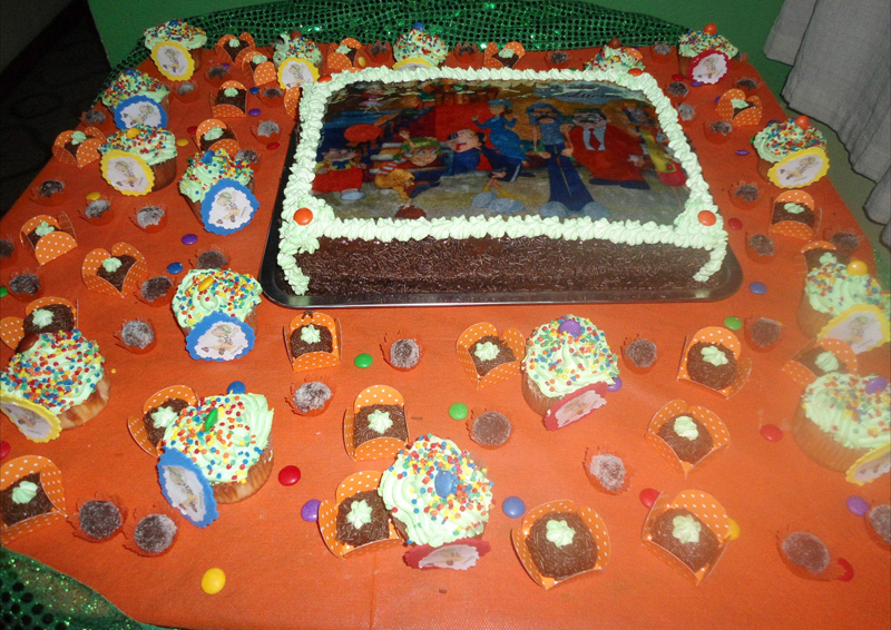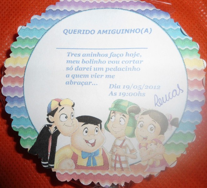 Que mimo a festa que nossa Leitora Viviane Santos fez para seu filho Lucas, com o Tema Chaves, ela fez Pirulitos,Livrinho para Colorir de Lembrancinha e bandeirinha sanduíches, bolo e mesa de doces, ficou super legal!!