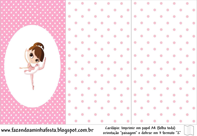 Cardápio, Convite ou Programa em Z Bailarina Rosa Poá: