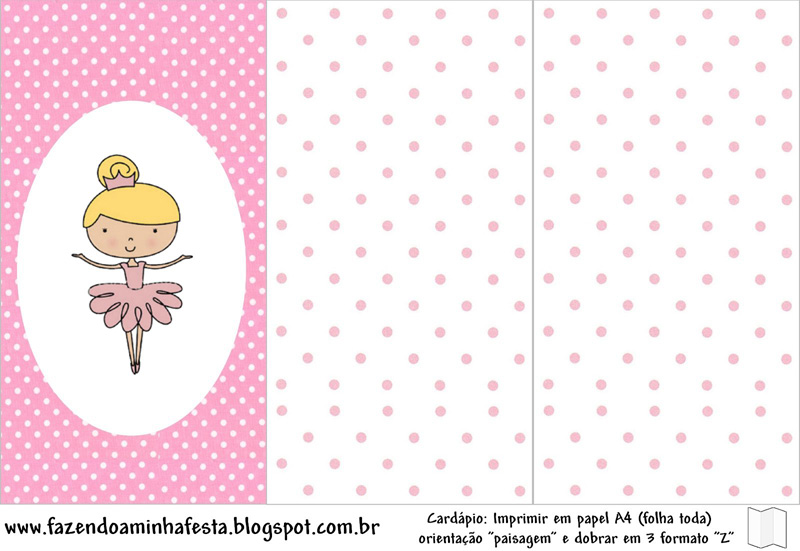 Moldura Convite e Cartão Bailarina Rosa Poá: