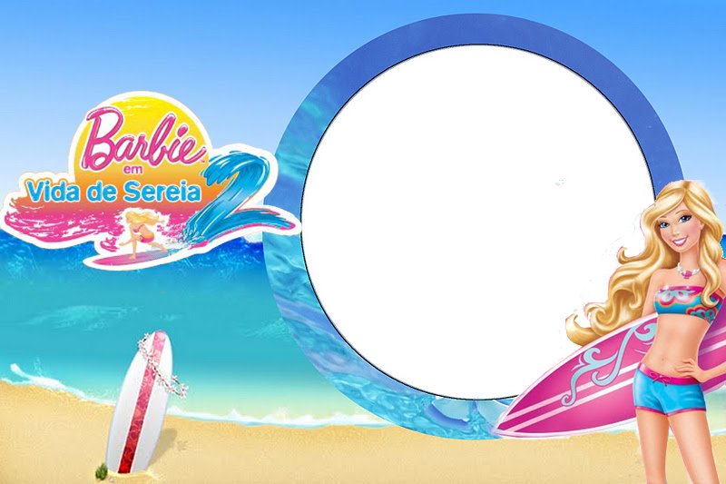 Moldura Convite e Cartão Barbie Vida de Sereia: