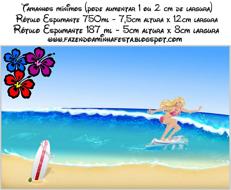Rótulo Champagne,Espumante e Vinho Barbie Vida de Sereia: