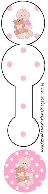 Convite Pirulito qualquer tamanho Chá de Bebê Menina com Ursinho: