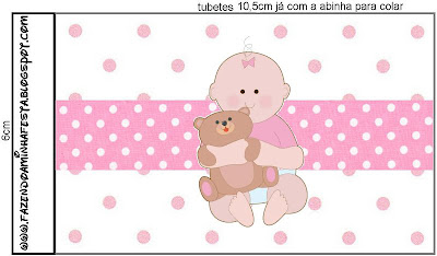 Rótulo Tubetes Chá de Bebê Menina com Ursinho:
