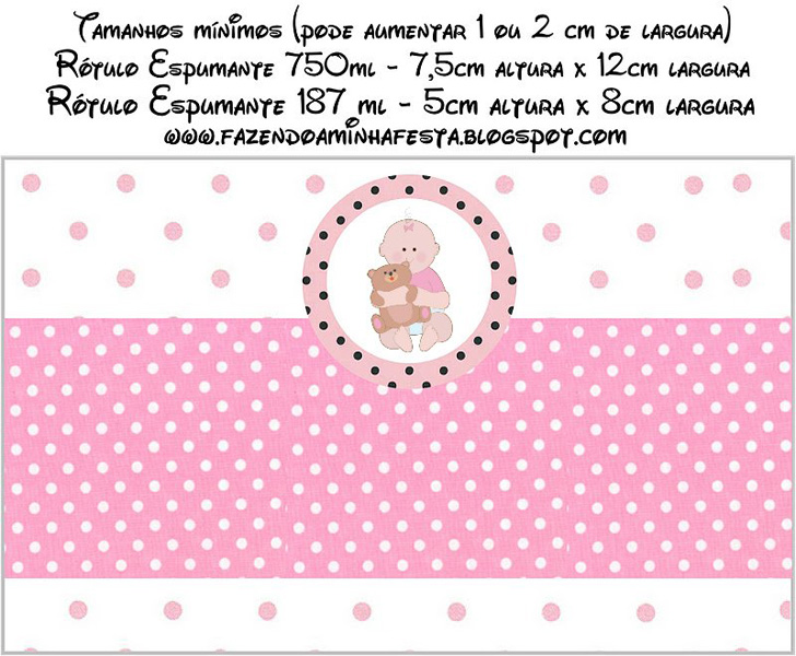 Rótulo Champagne, Espumante e Vinho Chá de Bebê Menina com Ursinho: