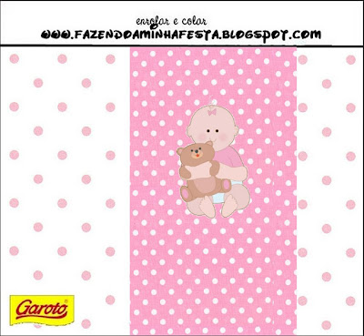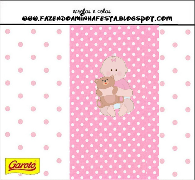 Rótulo Pastilha Garoto Chá de Bebê Menina com Ursinho: