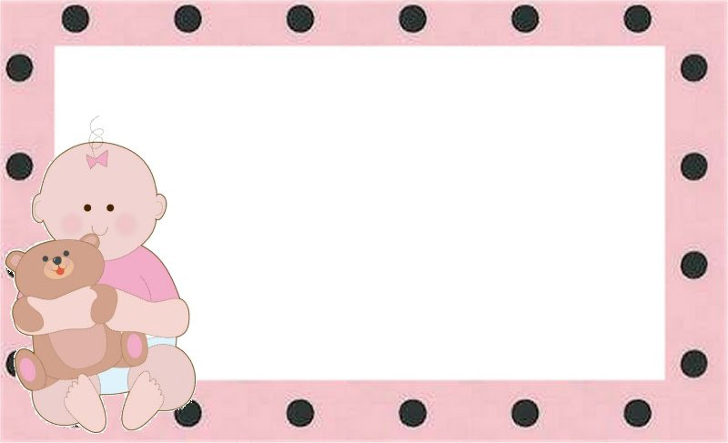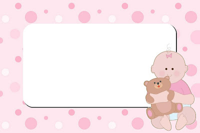 Moldura Convite e Cartão Chá de Bebê Menina com Ursinho: