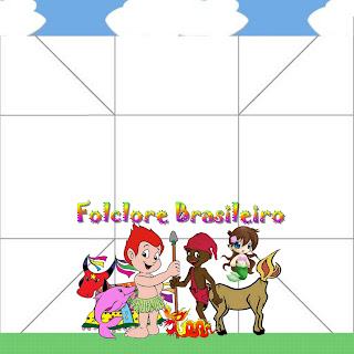 Moldura Convite e Cartão Folclore Brasileiro, Bumba, Curupira, Boto, Boitatá, Saci Pererê, Iara, Mula sem Cabeça:
