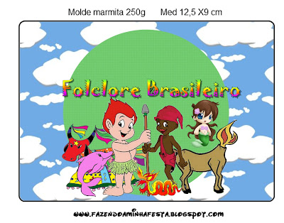 Rótulo Pote Papinha Folclore Brasileiro, Bumba, Curupira, Boto, Boitatá, Saci Pererê, Iara, Mula sem Cabeça: