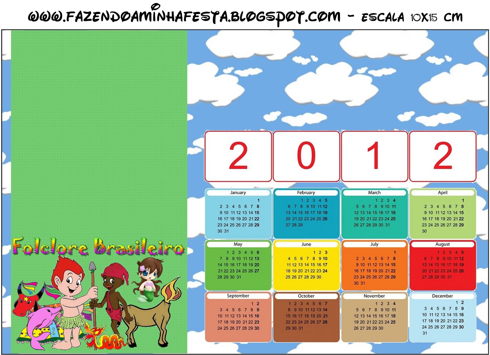 Convite Calendário 2012 Folclore Brasileiro, Bumba, Curupira, Boto, Boitatá, Saci Pererê, Iara, Mula sem Cabeça: