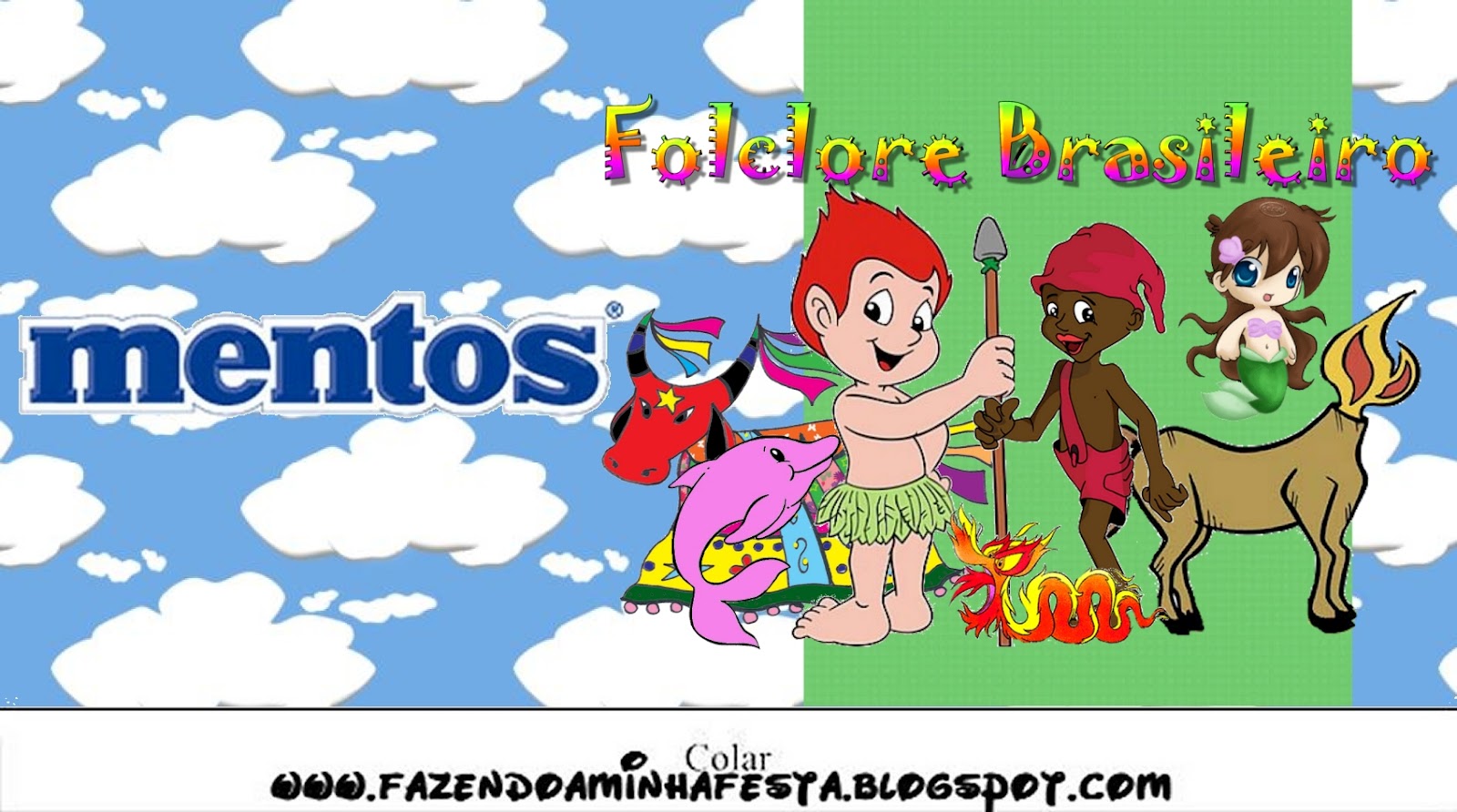 Rótulo Mentos Folclore Brasileiro, Bumba, Curupira, Boto, Boitatá, Saci Pererê, Iara, Mula sem Cabeça: