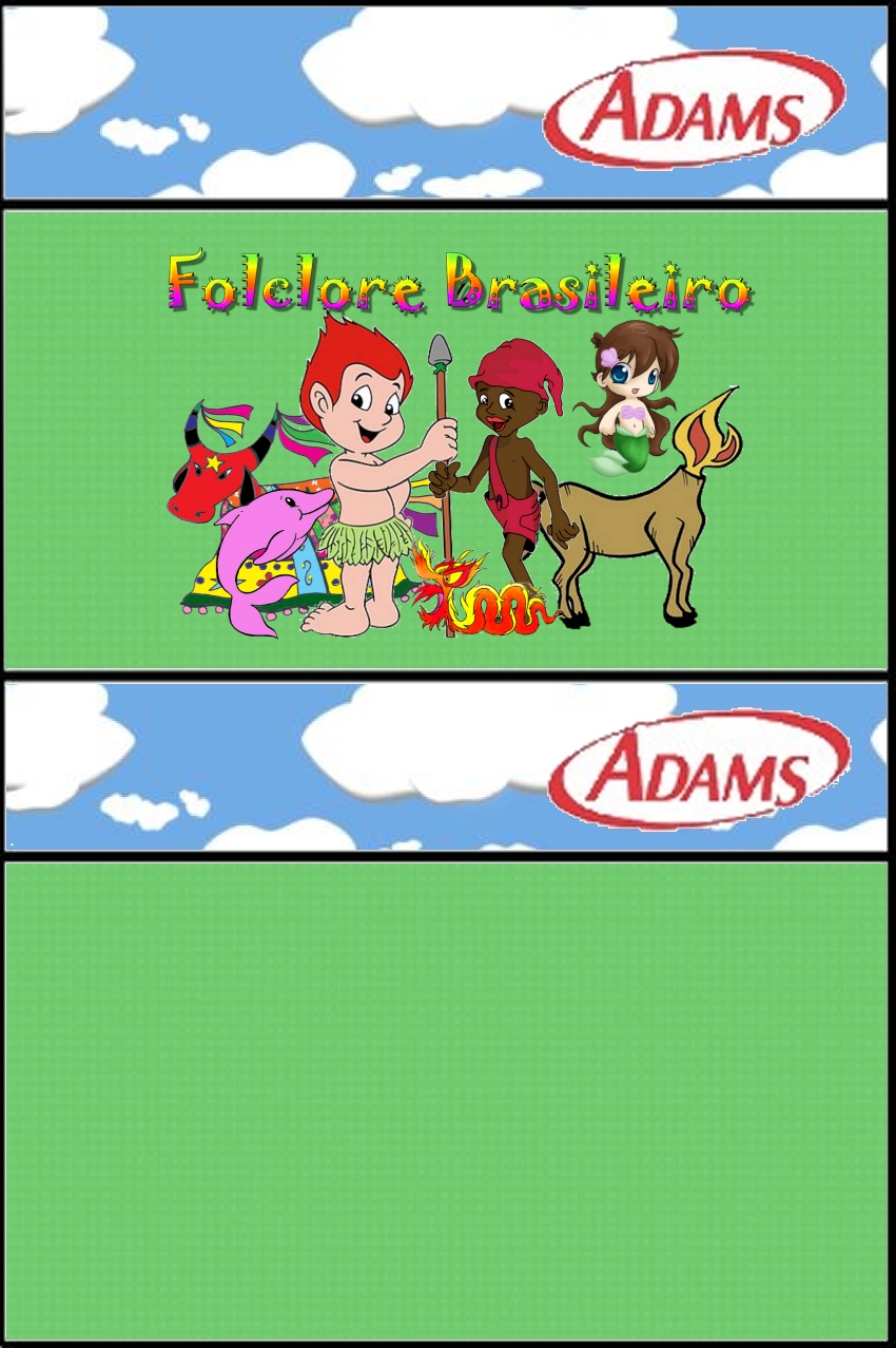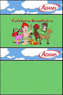 Rótulo Chiclets Adams Folclore Brasileiro, Bumba, Curupira, Boto, Boitatá, Saci Pererê, Iara, Mula sem Cabeça: