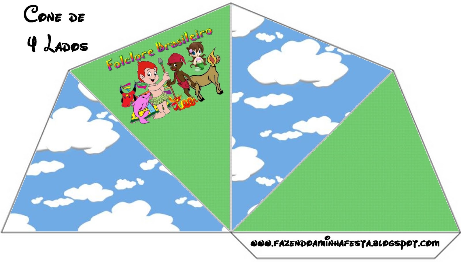 Cone Guloseimas 4 lados Folclore Brasileiro, Bumba, Curupira, Boto, Boitatá, Saci Pererê, Iara, Mula sem Cabeça: