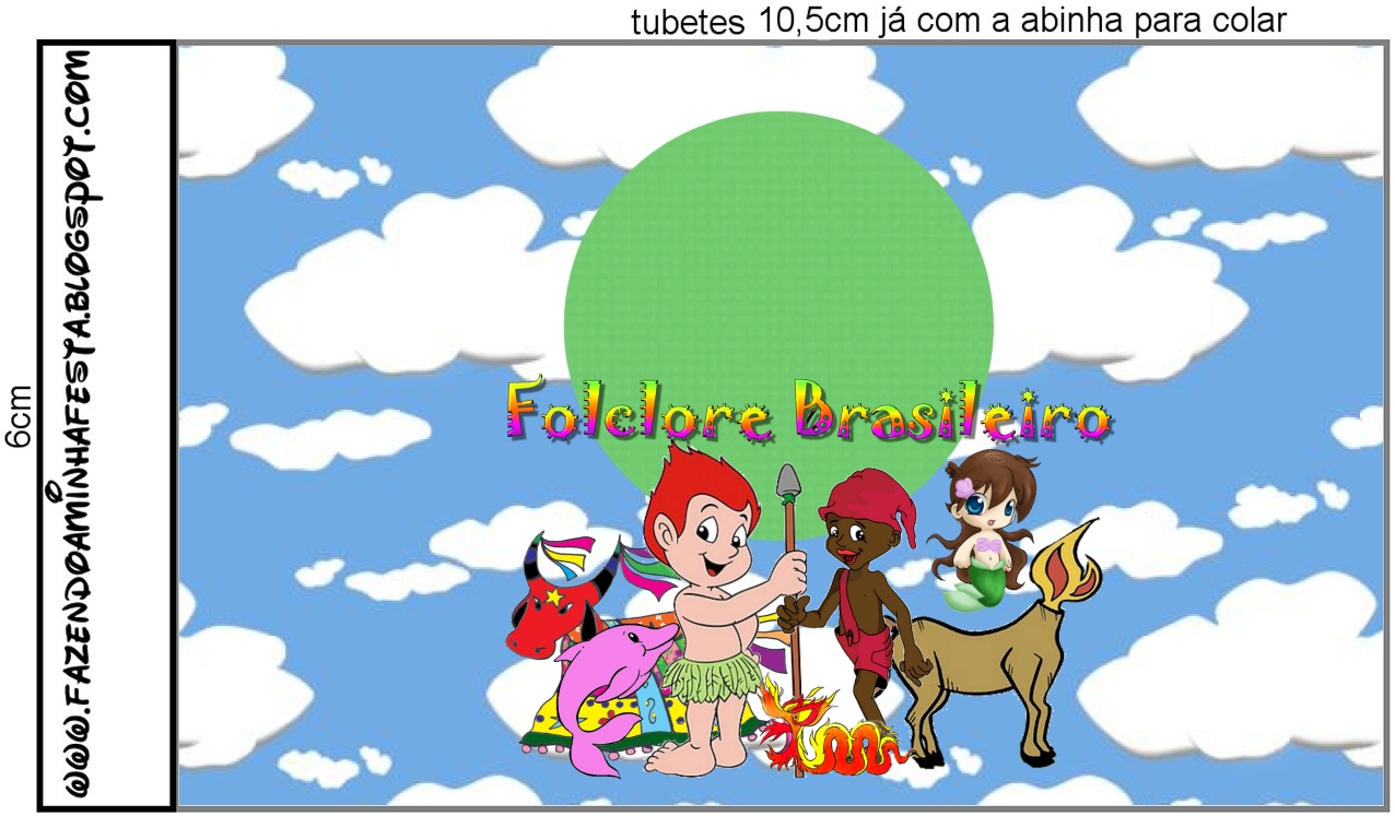 Rótulo Copinho de Brigadeiro Folclore Brasileiro, Bumba, Curupira, Boto, Boitatá, Saci Pererê, Iara, Mula sem Cabeça: