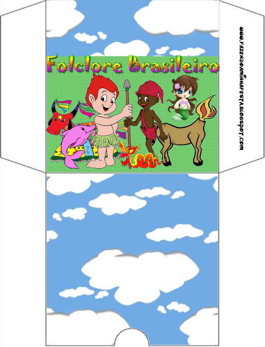 Convite Caixa Tampa Folclore Brasileiro, Bumba, Curupira, Boto, Boitatá, Saci Pererê, Iara, Mula sem Cabeça: