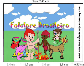 Rótulo Mini Confeti Folclore Brasileiro, Bumba, Curupira, Boto, Boitatá, Saci Pererê, Iara, Mula sem Cabeça: