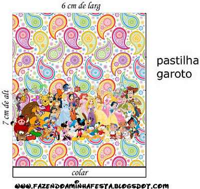 Convite Pirulito qualquer tamanho Personagens Disney para Meninas: