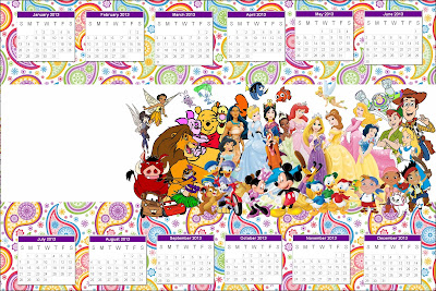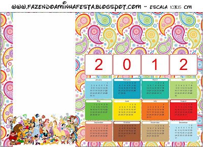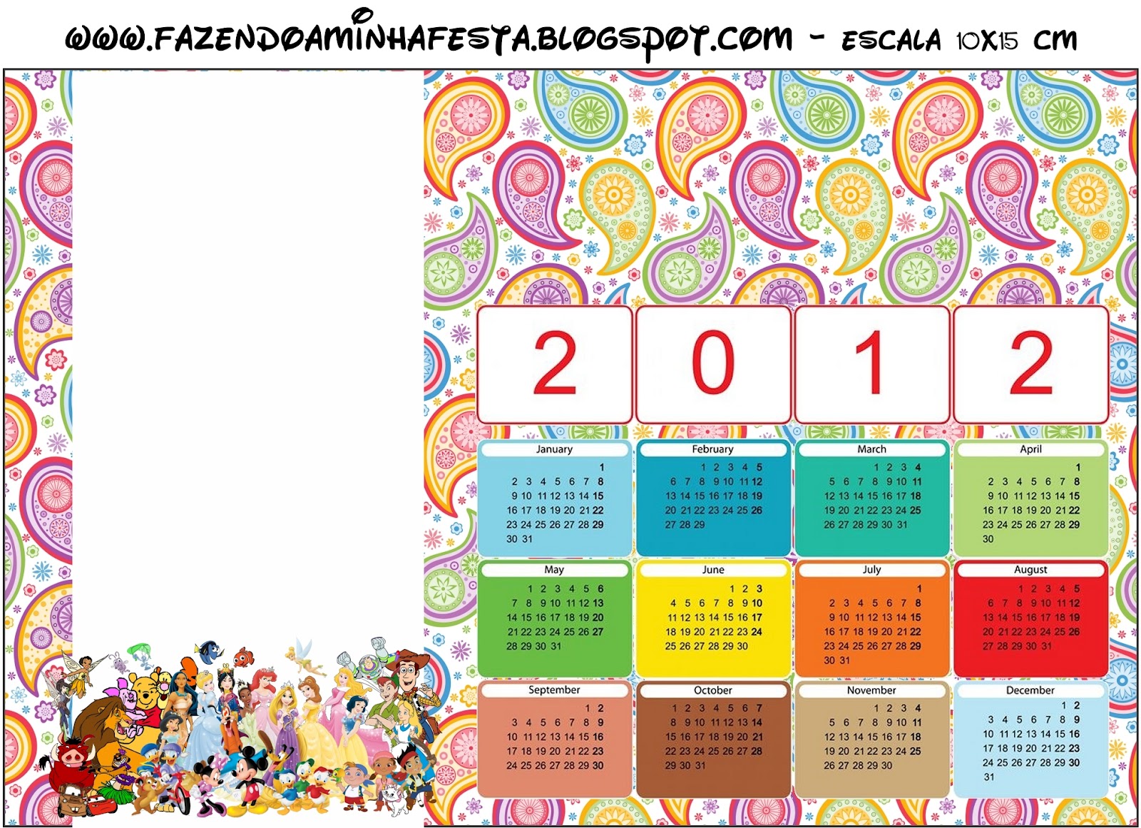 Convite Calendário 2012 Personagens Disney para Meninas: