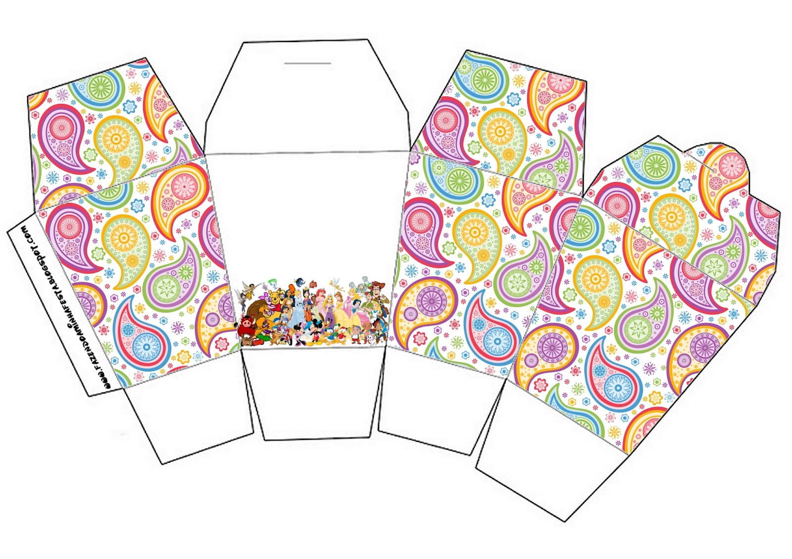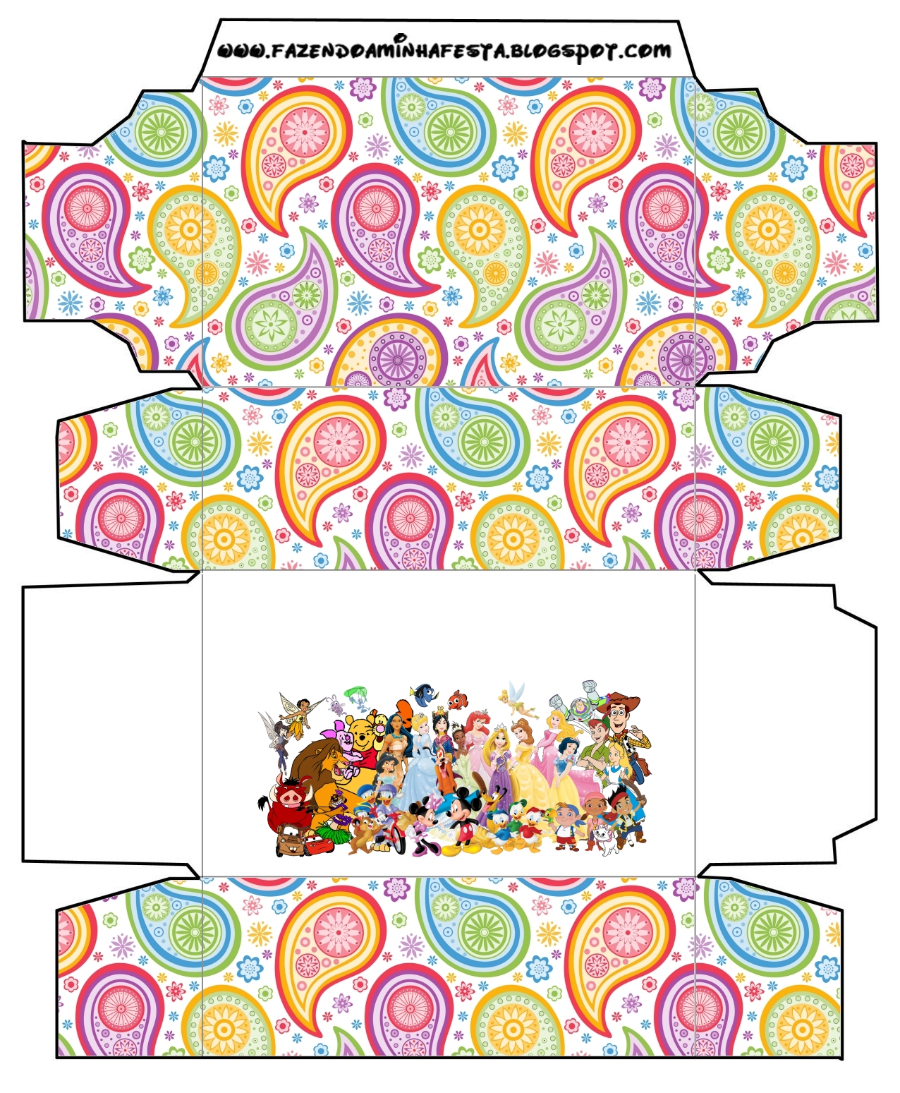 Convite Caixa Fundo Personagens Disney para Meninas: