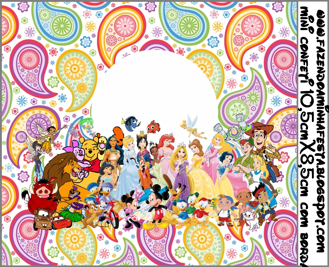 Rótulo Mini Confeti Personagens Disney para Meninas: