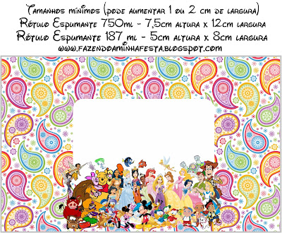 Rótulo Champagne,Espumante e Vinho Personagens Disney para Meninas: