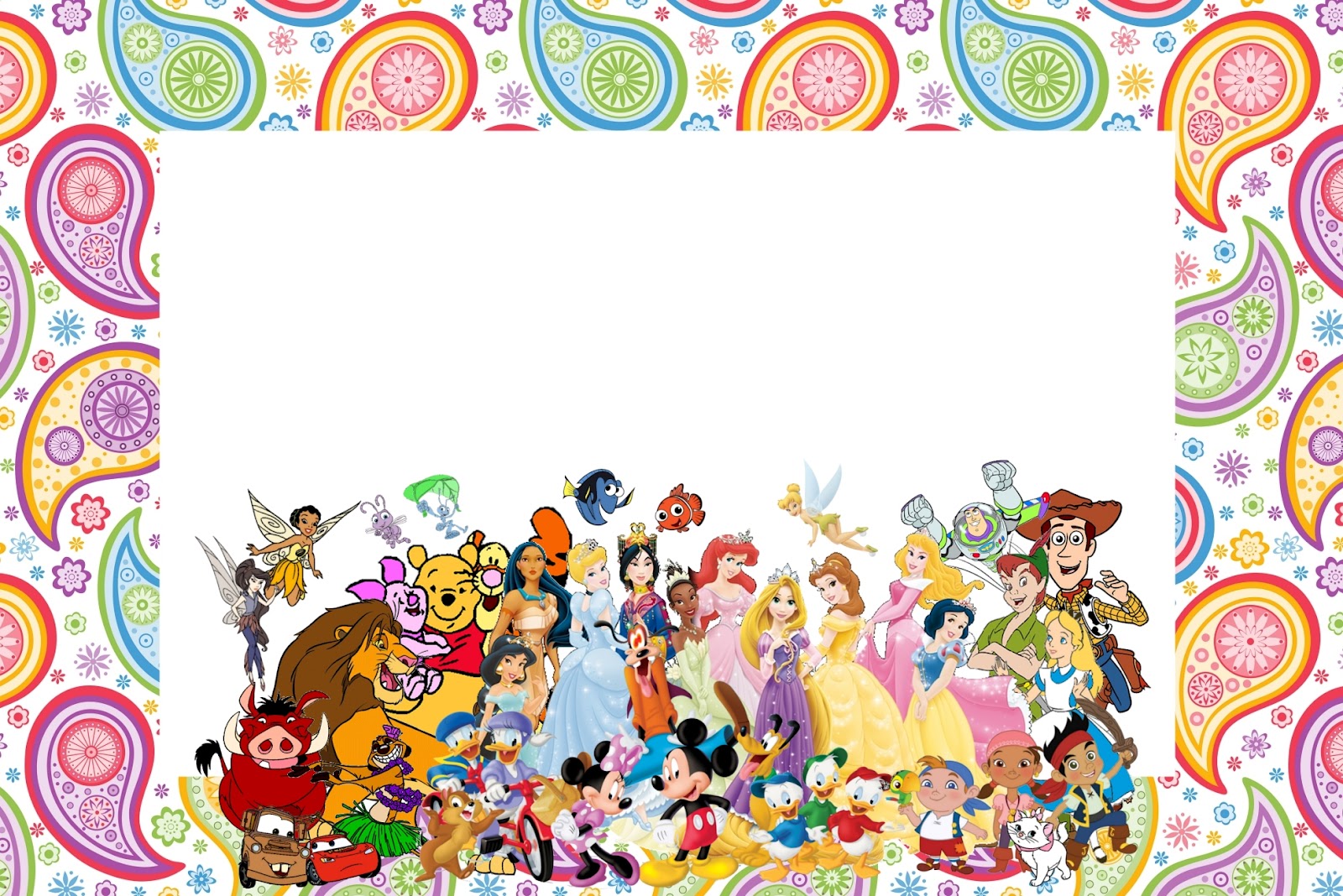Moldura Convite e Cartão Personagens Disney para Meninas: