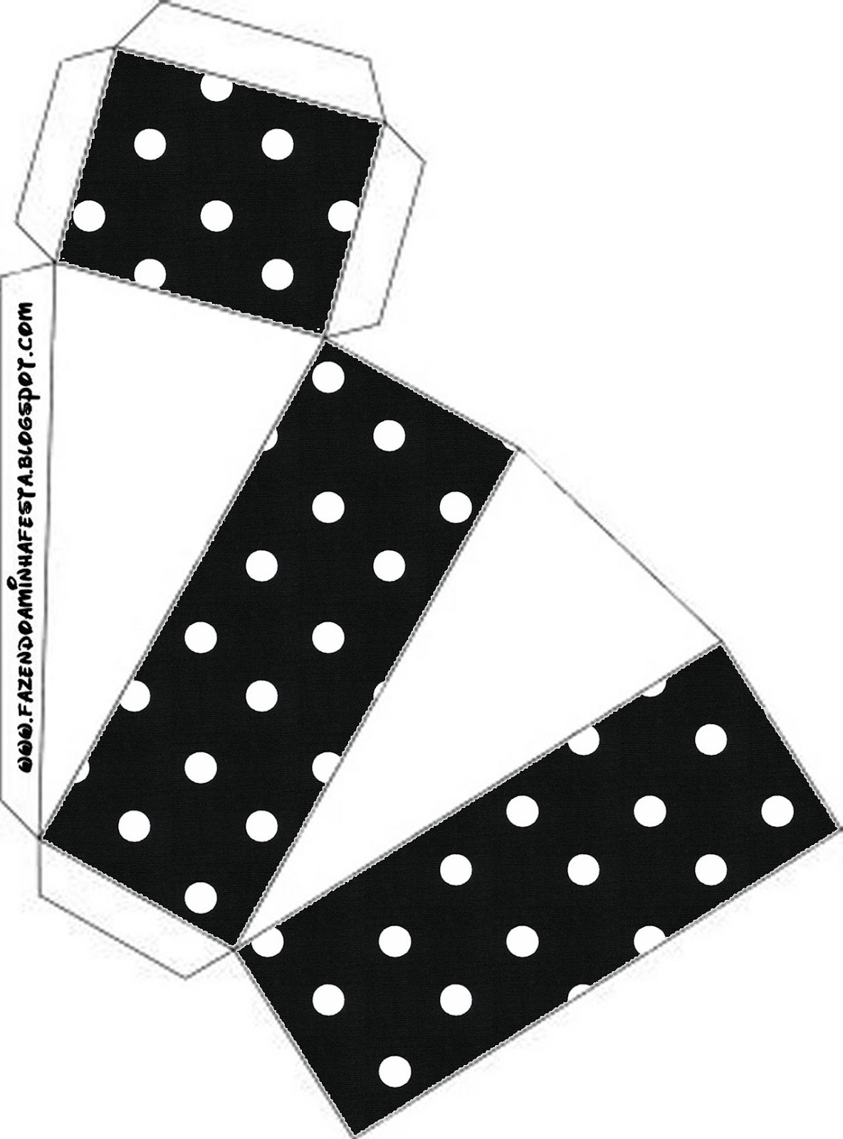 Convite Caixa Tampa Preto e Branco com Bolinhas:
