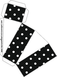 Convite Caixa Fundo Preto e Branco com Bolinhas: