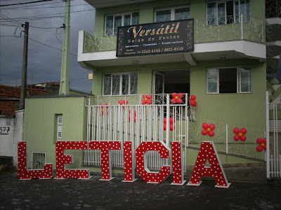 Olha essa ideia que legal, o nome da criança na frente do salão de festas, ADOREI!