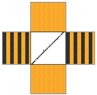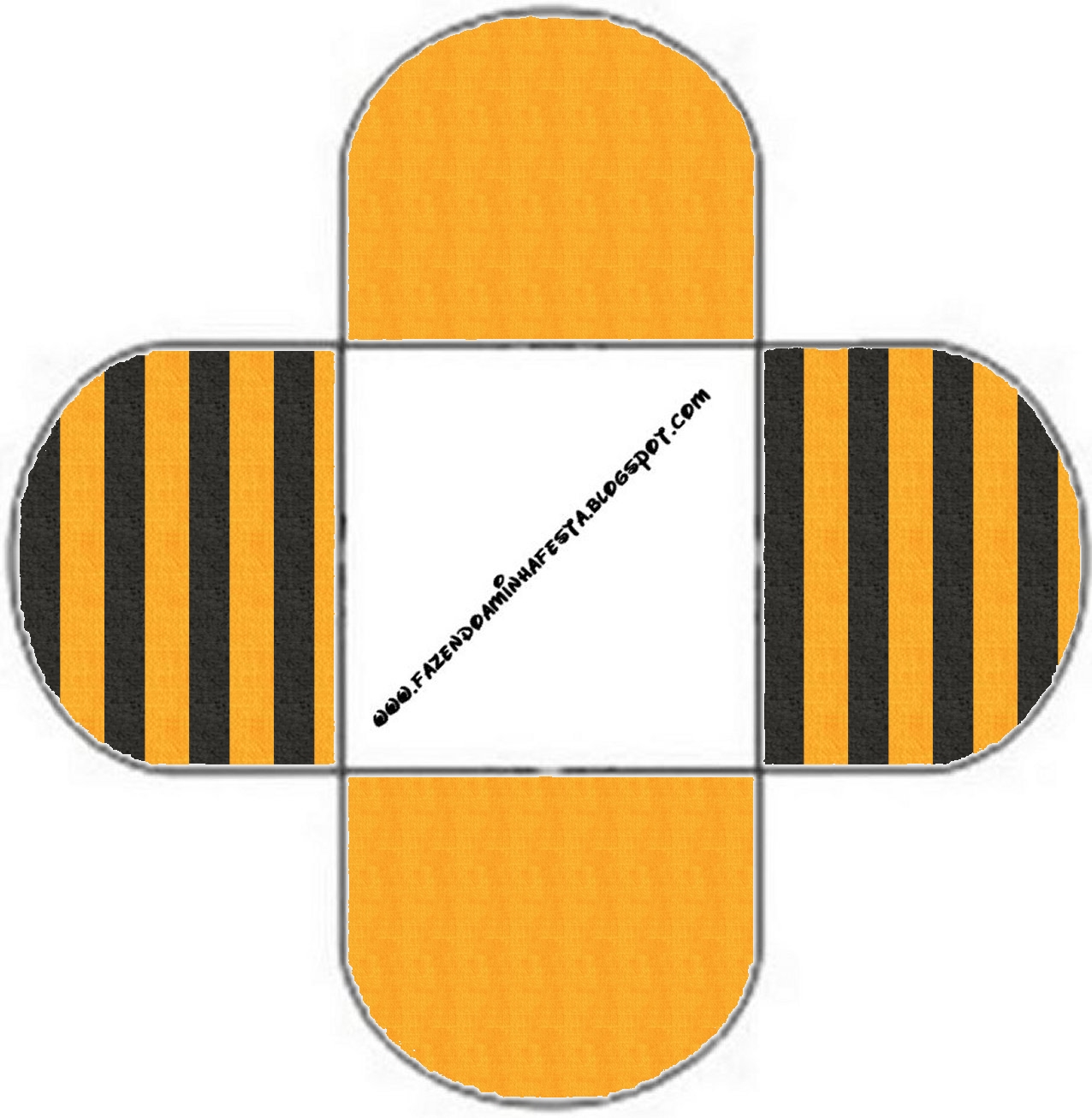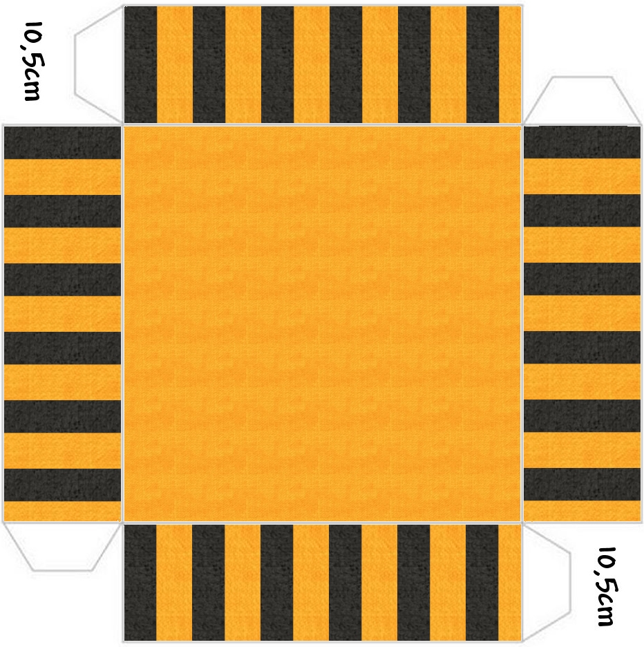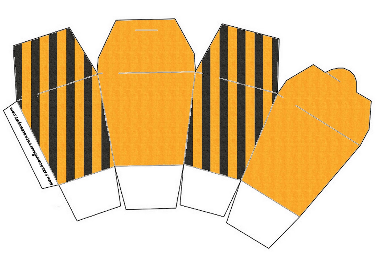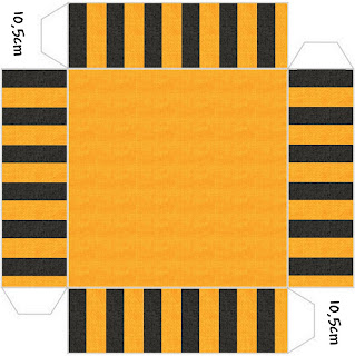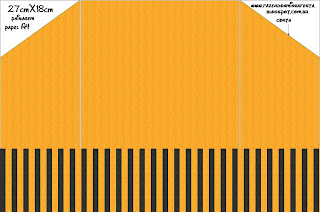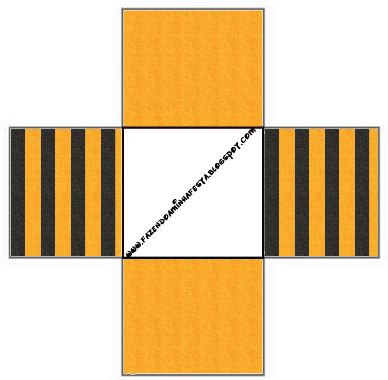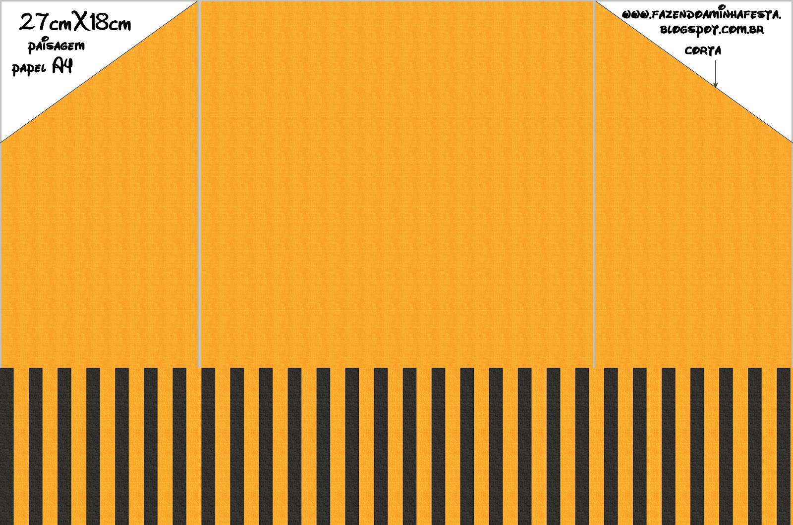 Convite Caixa Fundo Laranja e Preto com Listras: