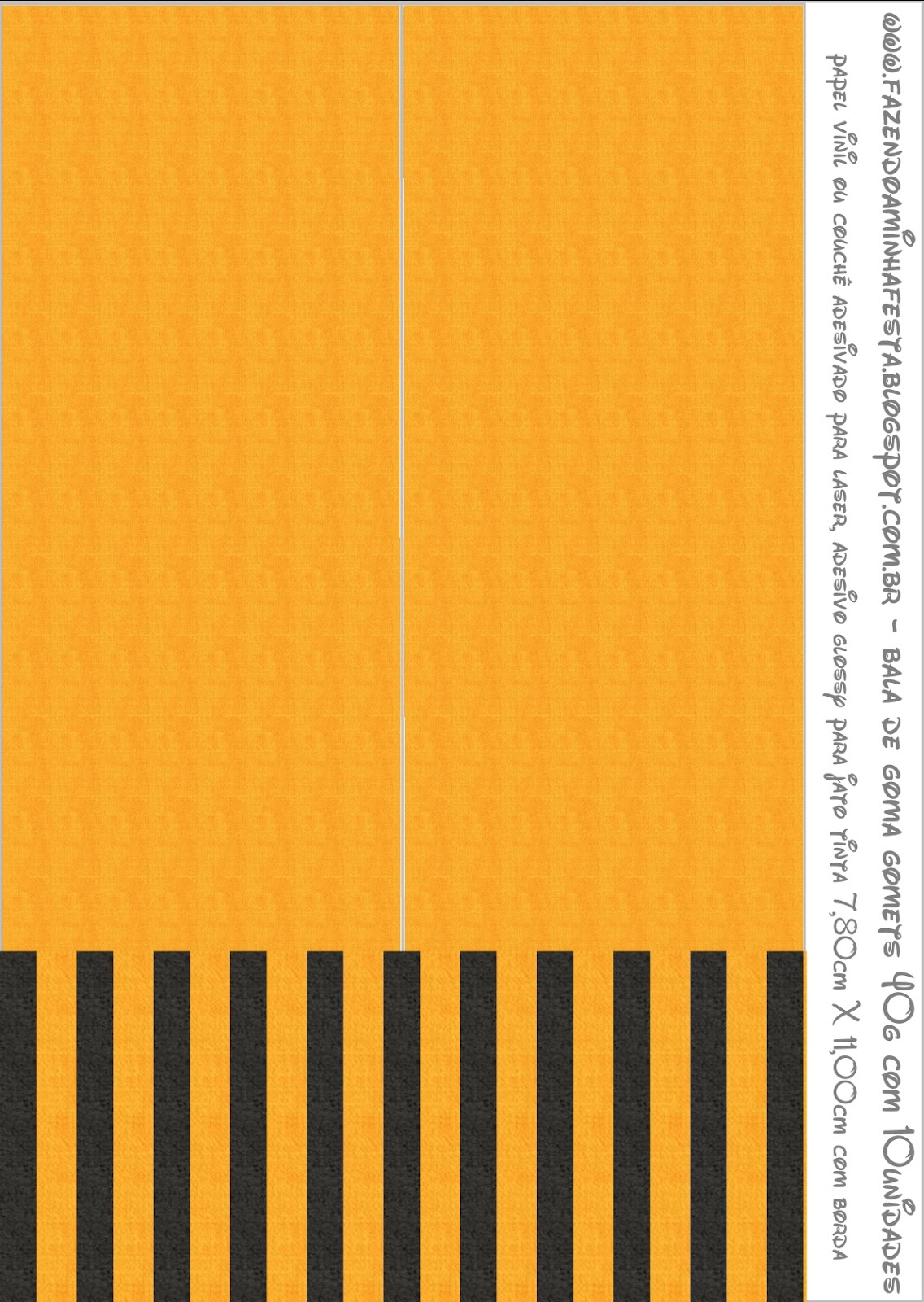 Rótulo Bala de Goma Gomets Laranja e Preto com Listras: