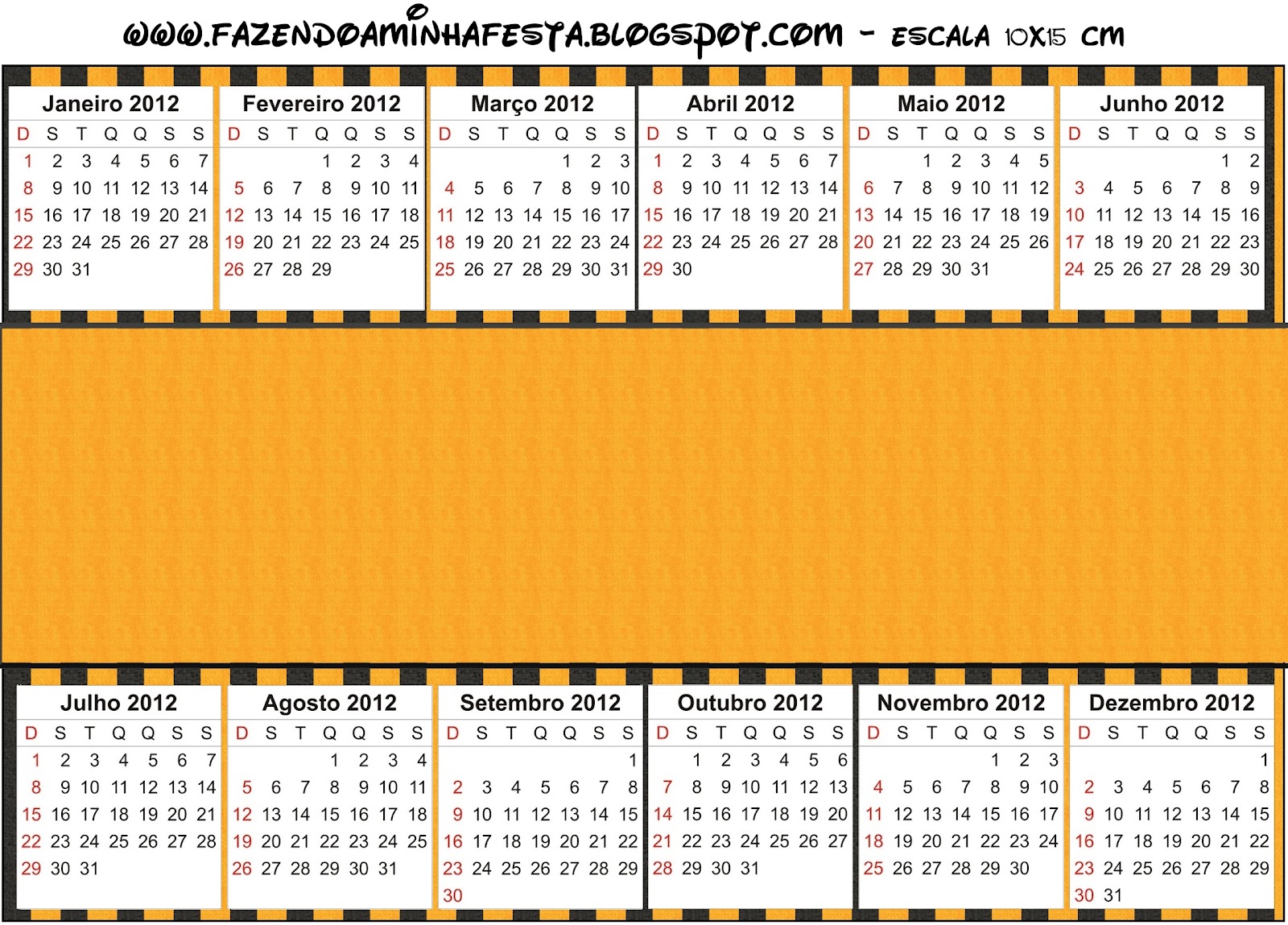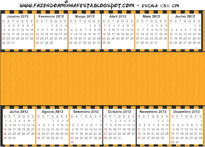 Convite Calendário 2012 Laranja e Preto com Listras:
