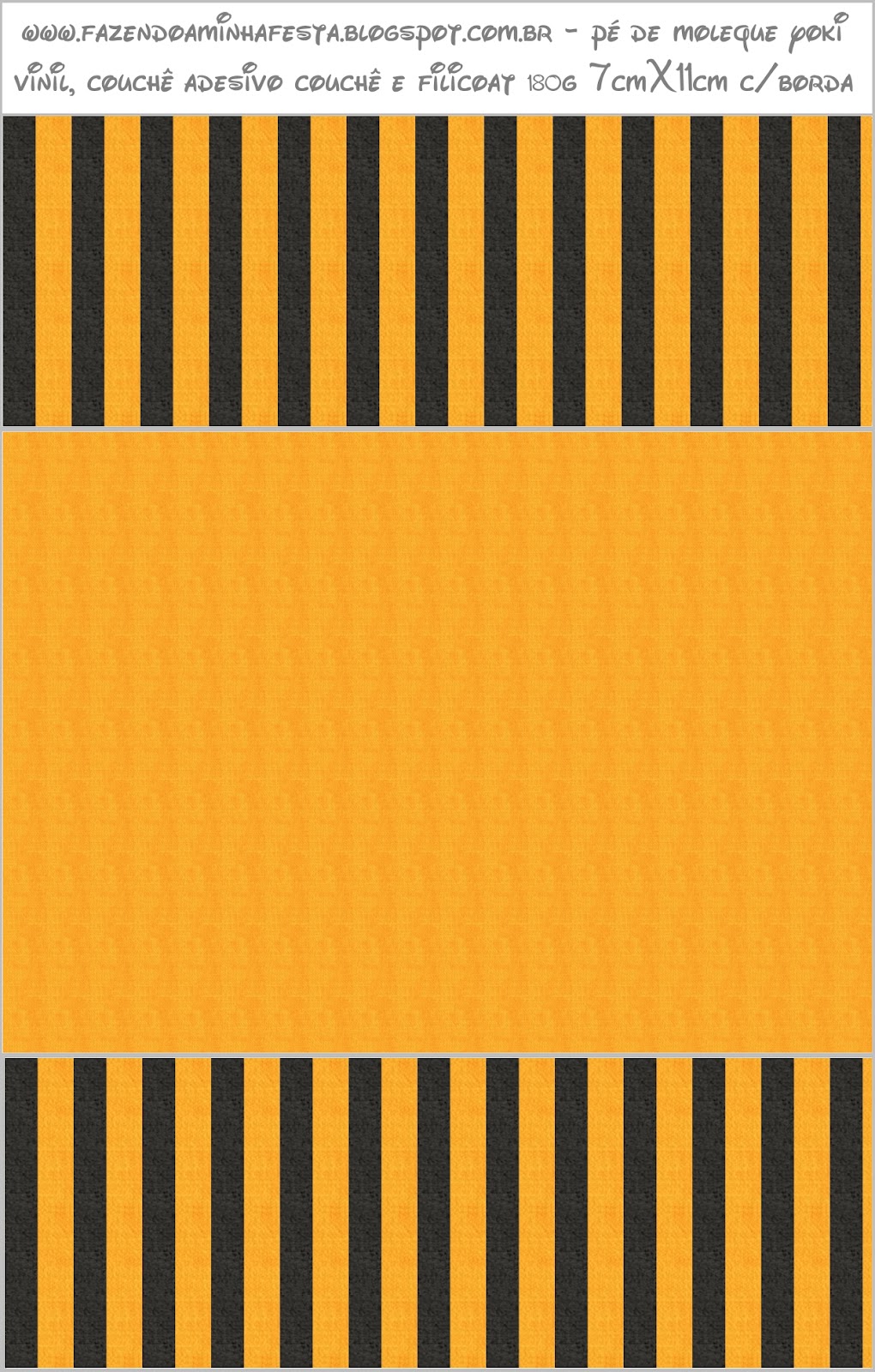 Rótulo Mini M&M Laranja e Preto com Listras: