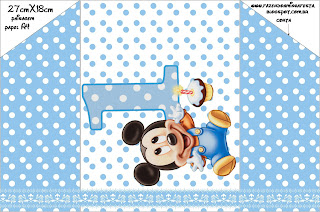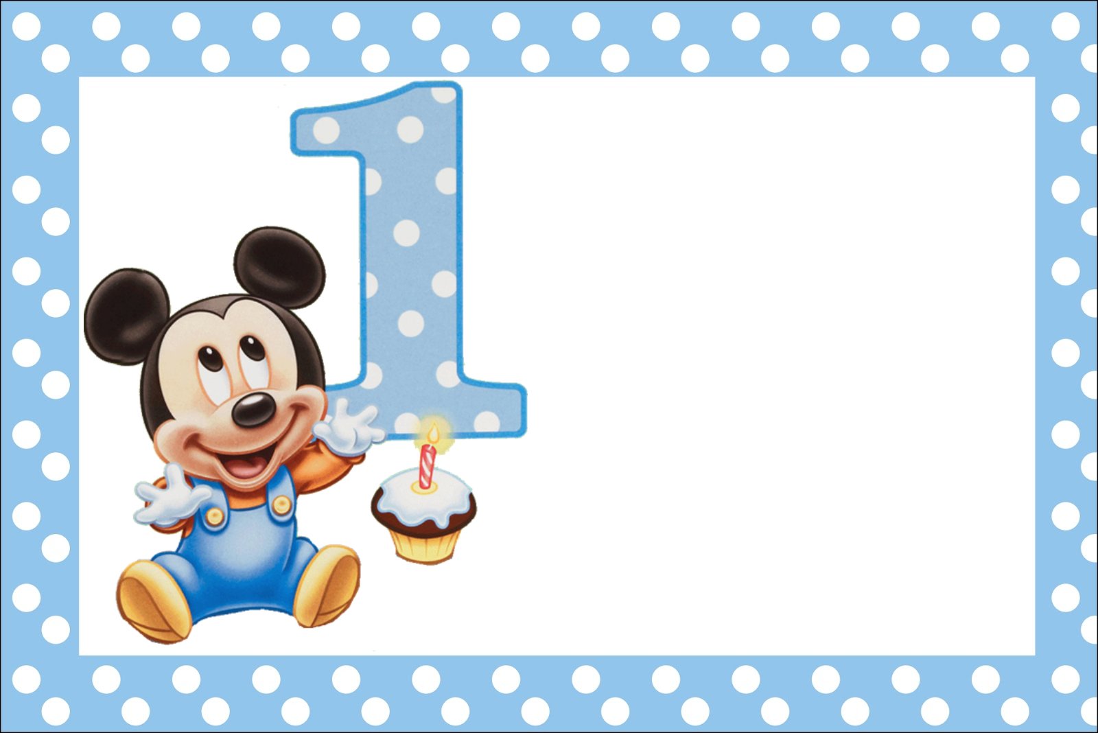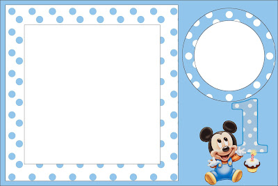 Moldura Convite e Cartão Mickey Baby Azul Poá:
