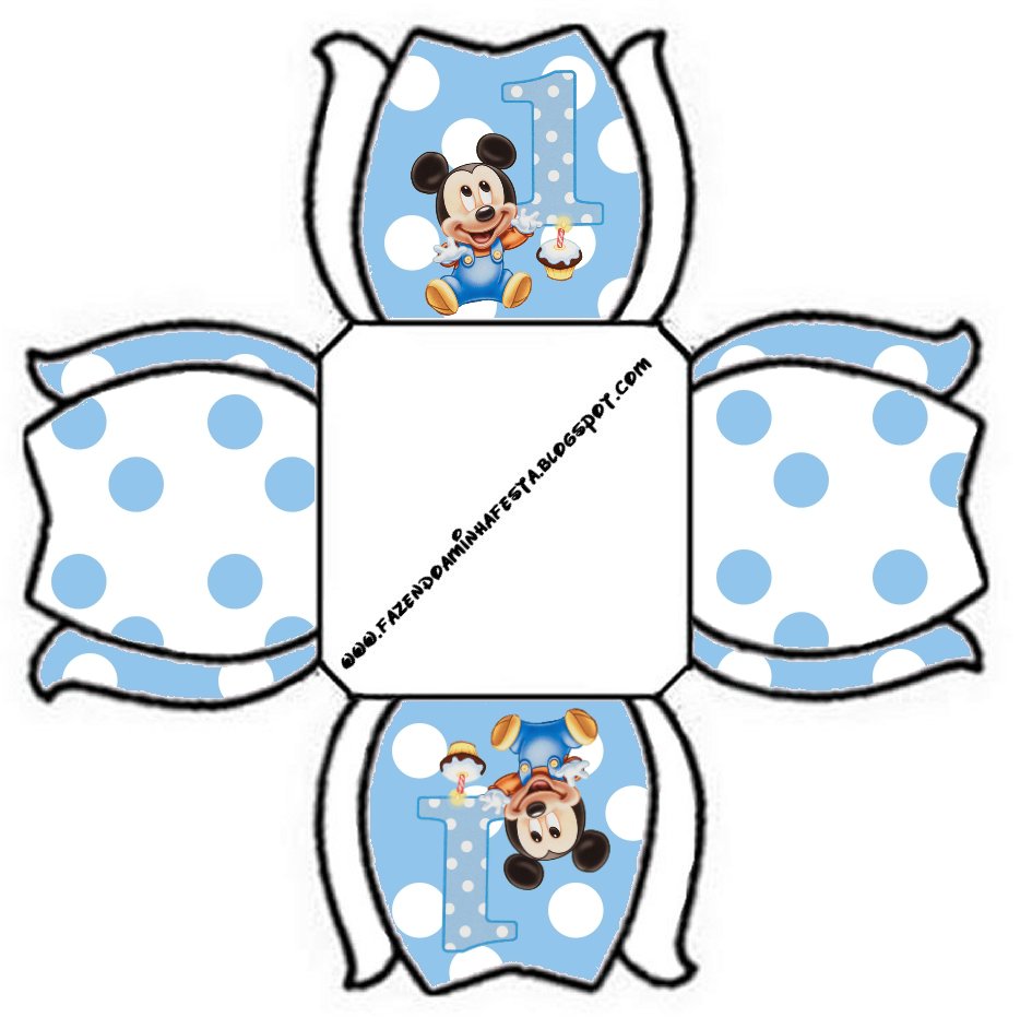 Convite Caixa Tampa Mickey Baby Azul Poá: