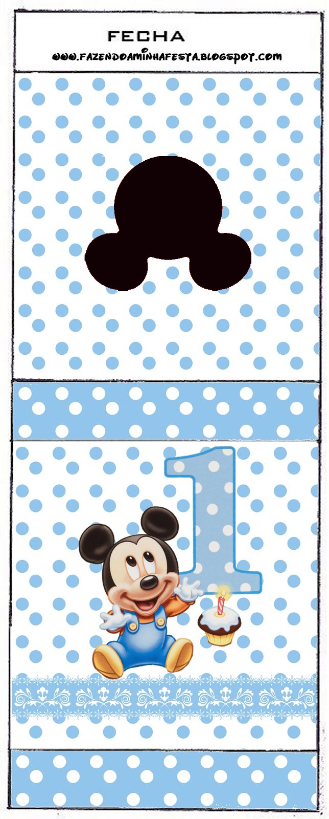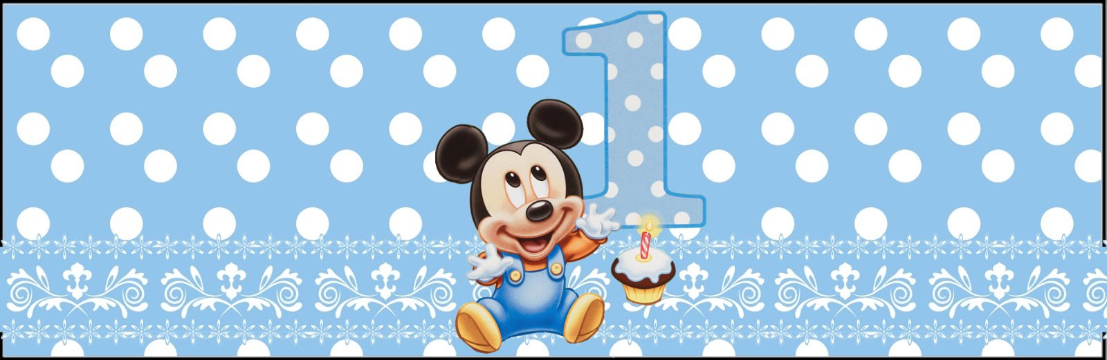 Rótulo Garrafas Mickey Baby Azul Poá: