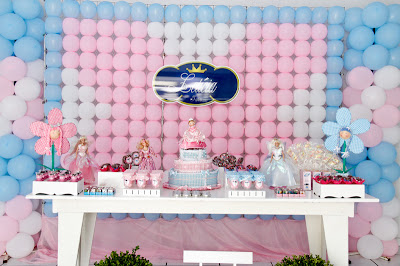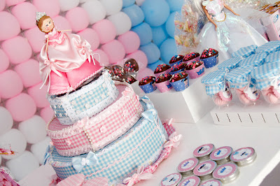 Gente essa festa está muito perfeita!!Nossa leitora Luciane Wescinski fez para sua filha Letícia de 5 anos esta linda festinha com o Tema Princesa, mas não princesa da Disney e nem princess, ela quiz fazer algo mais personalizado e conseguiu, a festa ficou um arraso!! O bolo Fake foi feito pela sua cunhada que encapou com tecido e fez esse lindo vestido para a boneca do bolo!!