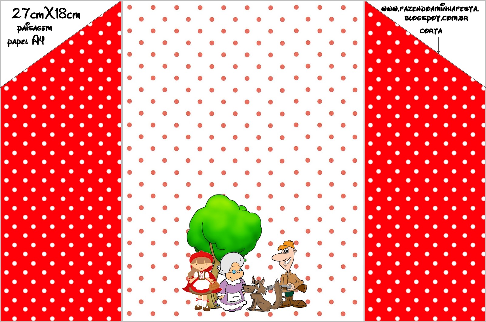Convite Triangular Transpassado Frente Chapeuzinho Vermelho: