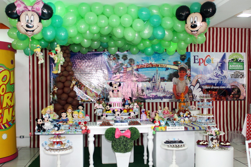 Confiram a decoração da festinha de 5 anos da Ellerim no tema dos 4 parques de Walt Disney Word!