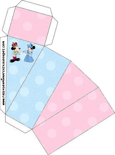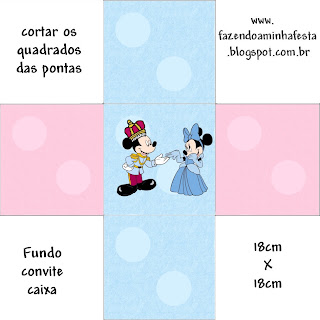 Convite Caixa Tampa Mickey e Minnie Azul e Rosa para Gêmeos: