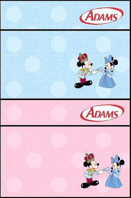 Rótulo Chiclets Adams Mickey e Minnie Azul e Rosa para Gêmeos: