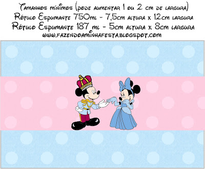 Rótulo Champagne,Vinho e Espumante Mickey e Minnie Azul e Rosa para Gêmeos: