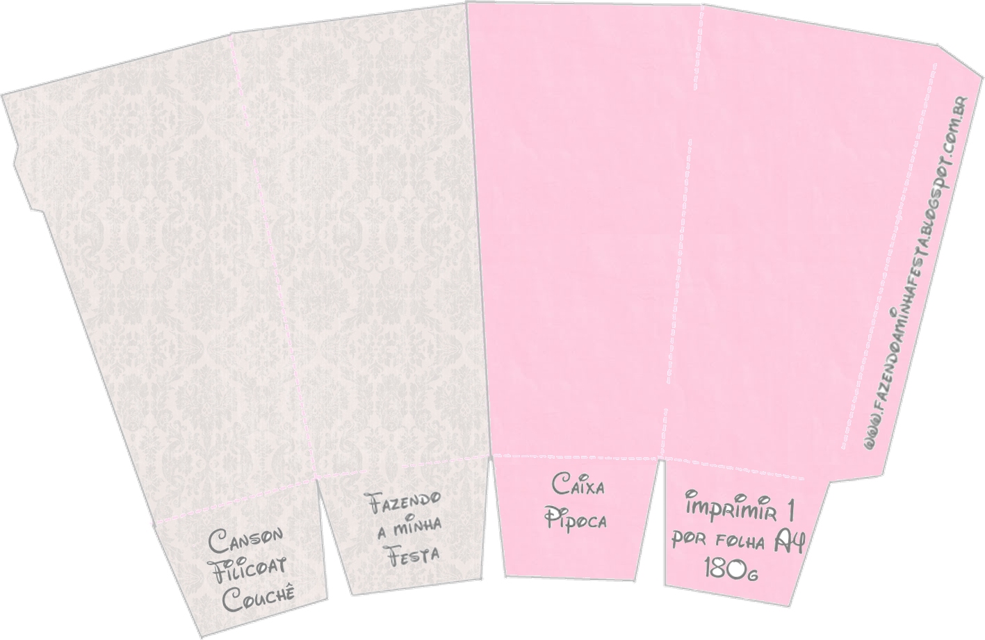 Caixa de Pipoca Rosa e Cinza: