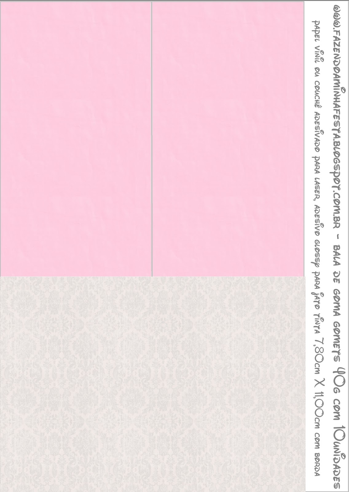 Rótulo Bala de Goma Gomets Rosa e Cinza: