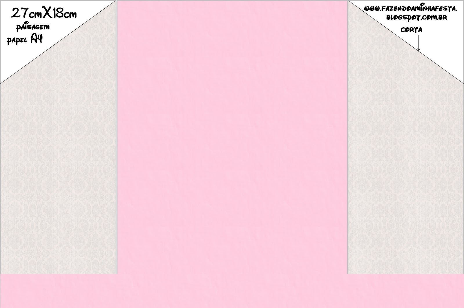 Convite Triangular Transpassado Verso Rosa e Cinza: