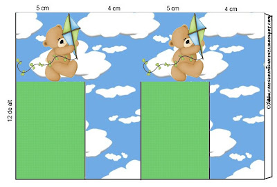 Caixa Convite Tampa Ursinho com a Pipa: