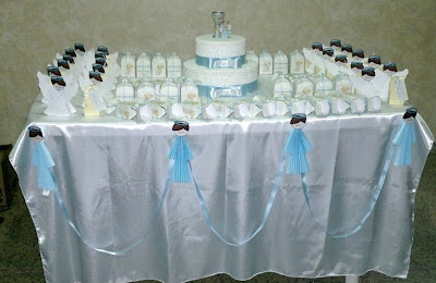 Nossa Leitora Camila Muriel fez essa festa linda para o Batizado de seu filho Fillipe!! Vejam o bolo que lindo! O enfeite da mesa ficou super delicado e fofo! Amei!