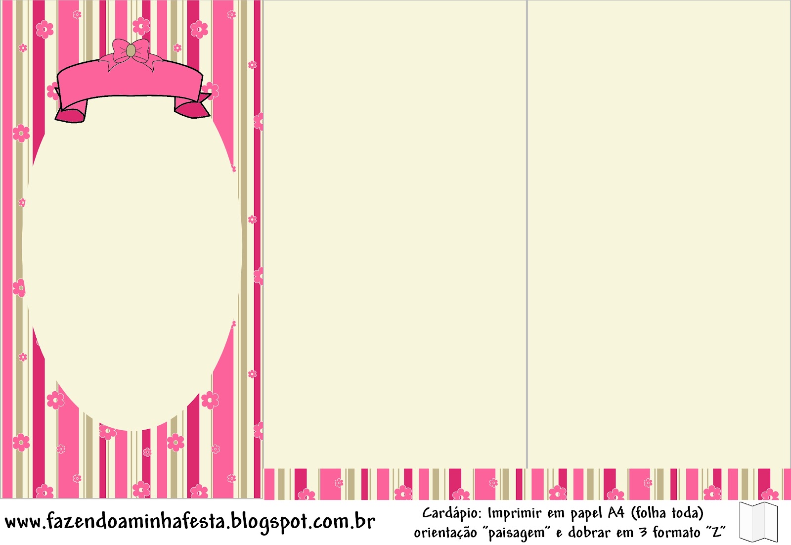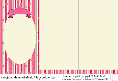 Convite, Cardápio ou Programa em Z Listras Rosa e Bege: