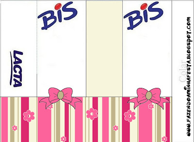 Rótulo Bis com Logo Lacta Listras Rosa e Bege: