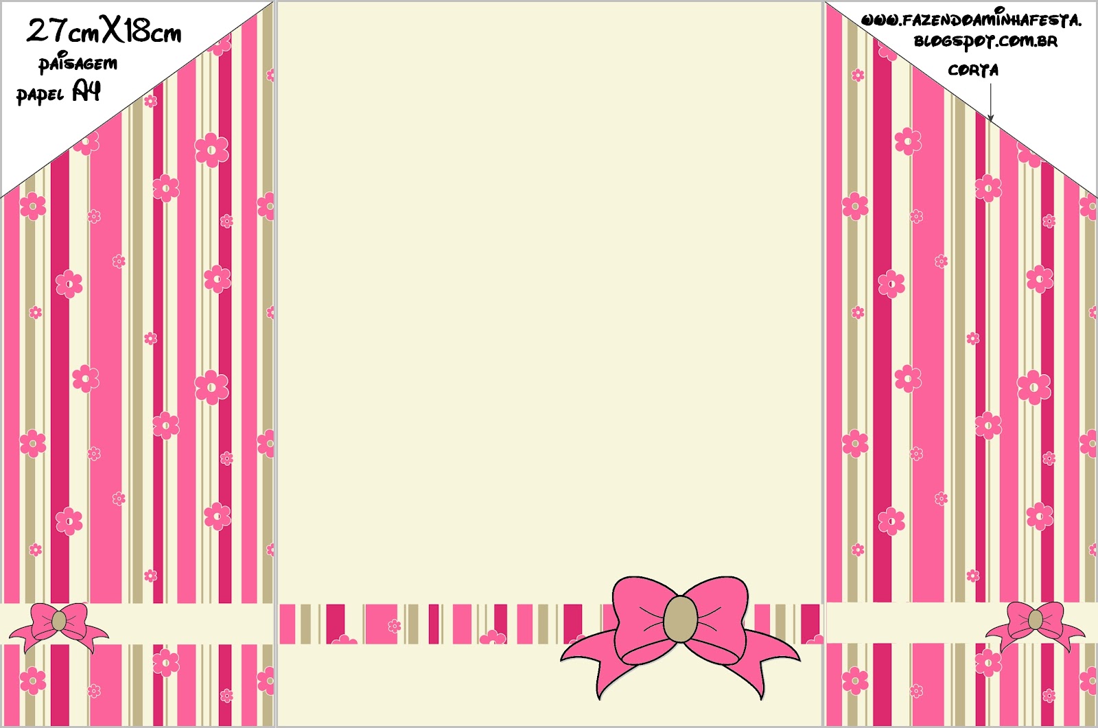 Moldura Convite e Cartão Listras Rosa e Bege:
